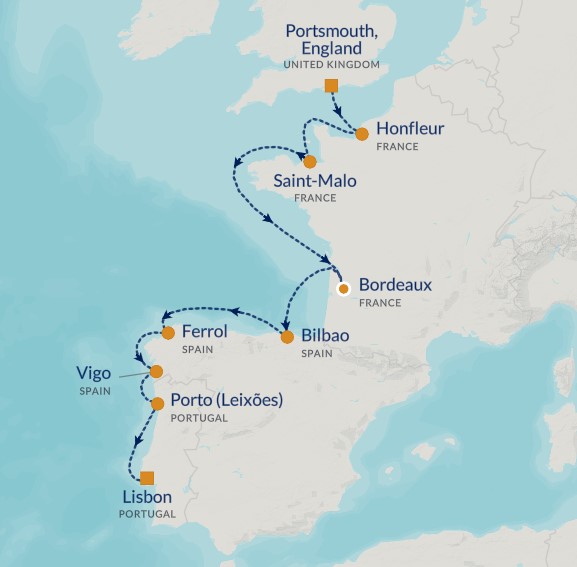 Embark / Debark: Portsmouth, England, United Kingdom - > Lisbon, Portugal