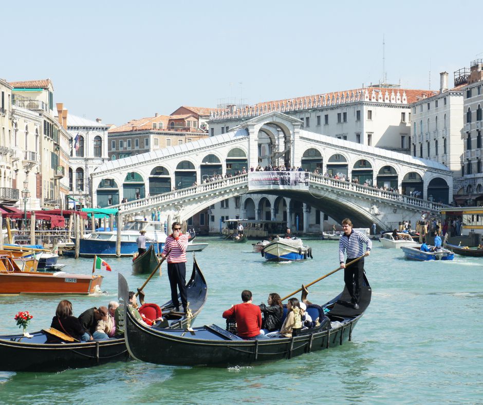 • Glide under bridges and along canals during a gondola ride in Venice.
