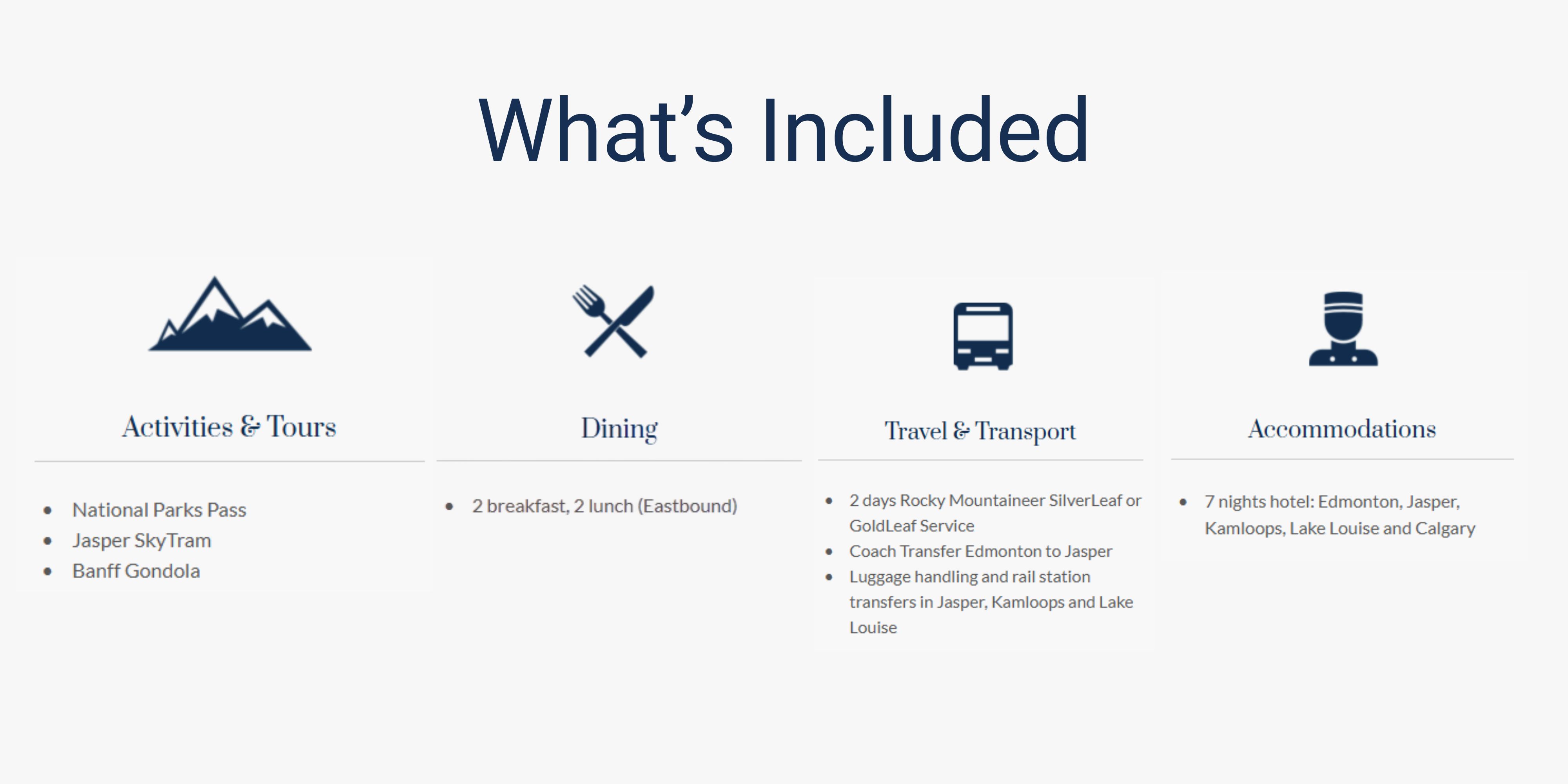 Enjoy a relaxing and unforgettable two-day journey onboard Rocky Mountaineer between Lake Louise and Jasper. Experience the awe-inspiring beauty of Jasper National Park on a half-day sightseeing tour.