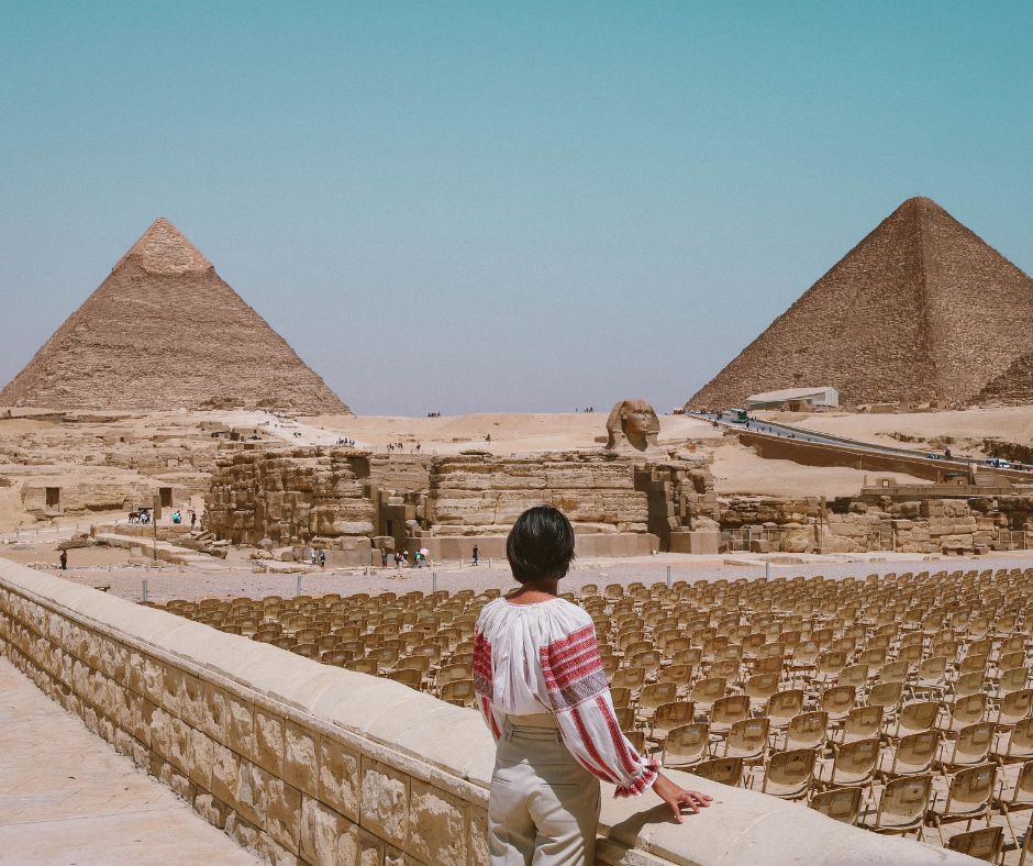 Stand before the Pyramids of Giza and the Great Sphinx, the last of the Seven Wonders of the Ancient World.