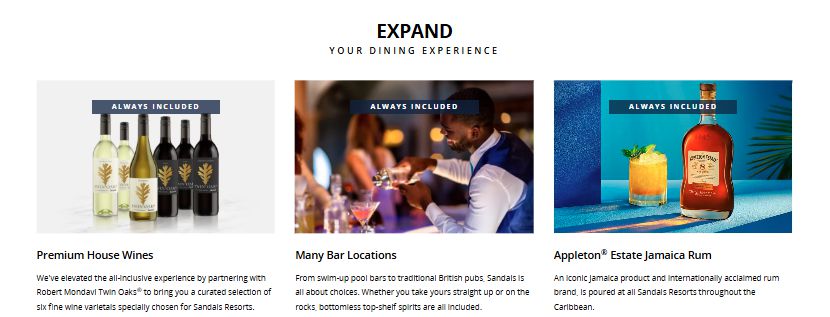 Every water sport imaginable is included along with top-of-the-line equipment and professional instruction. Sandals includes a full range of water sports like: • Canoes/Kayaks • Snorkeling • Hobie Cats • Scuba Diving • Paddle Boarding • Windsurfing